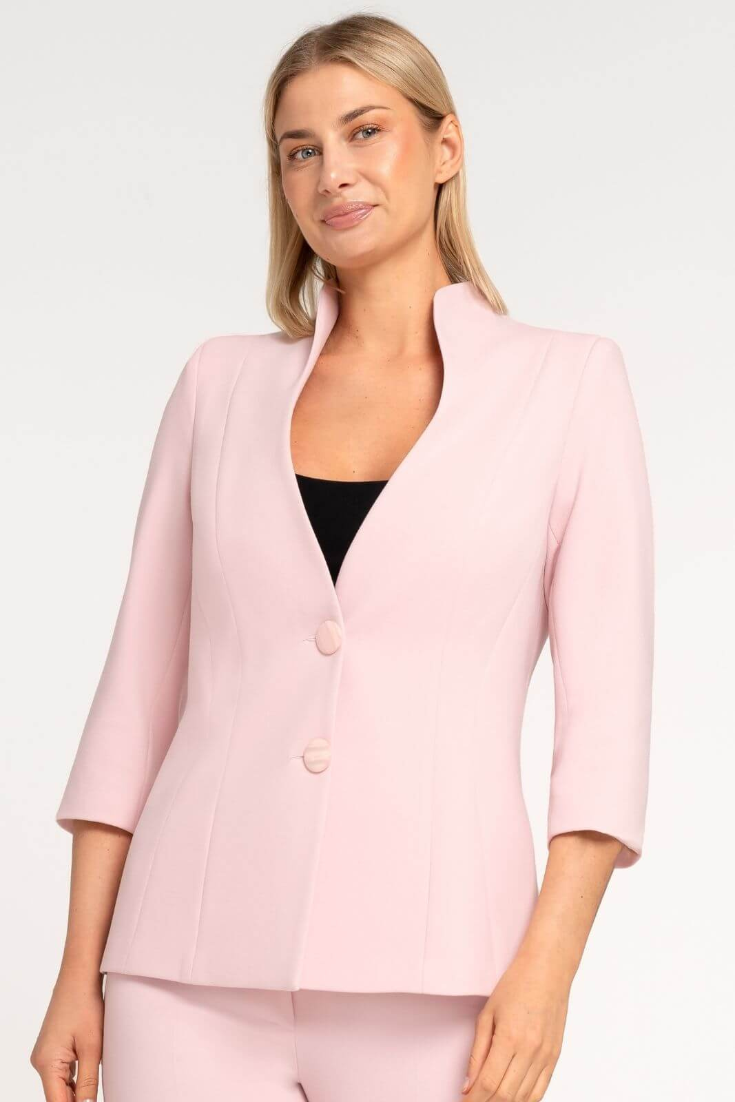 Żakiet damski pudrowy ze stójką i rękawem 3/4 – Elise