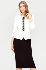 Komplet ecru z haftowaną bluzką i czarną spódnicą – Briggite
