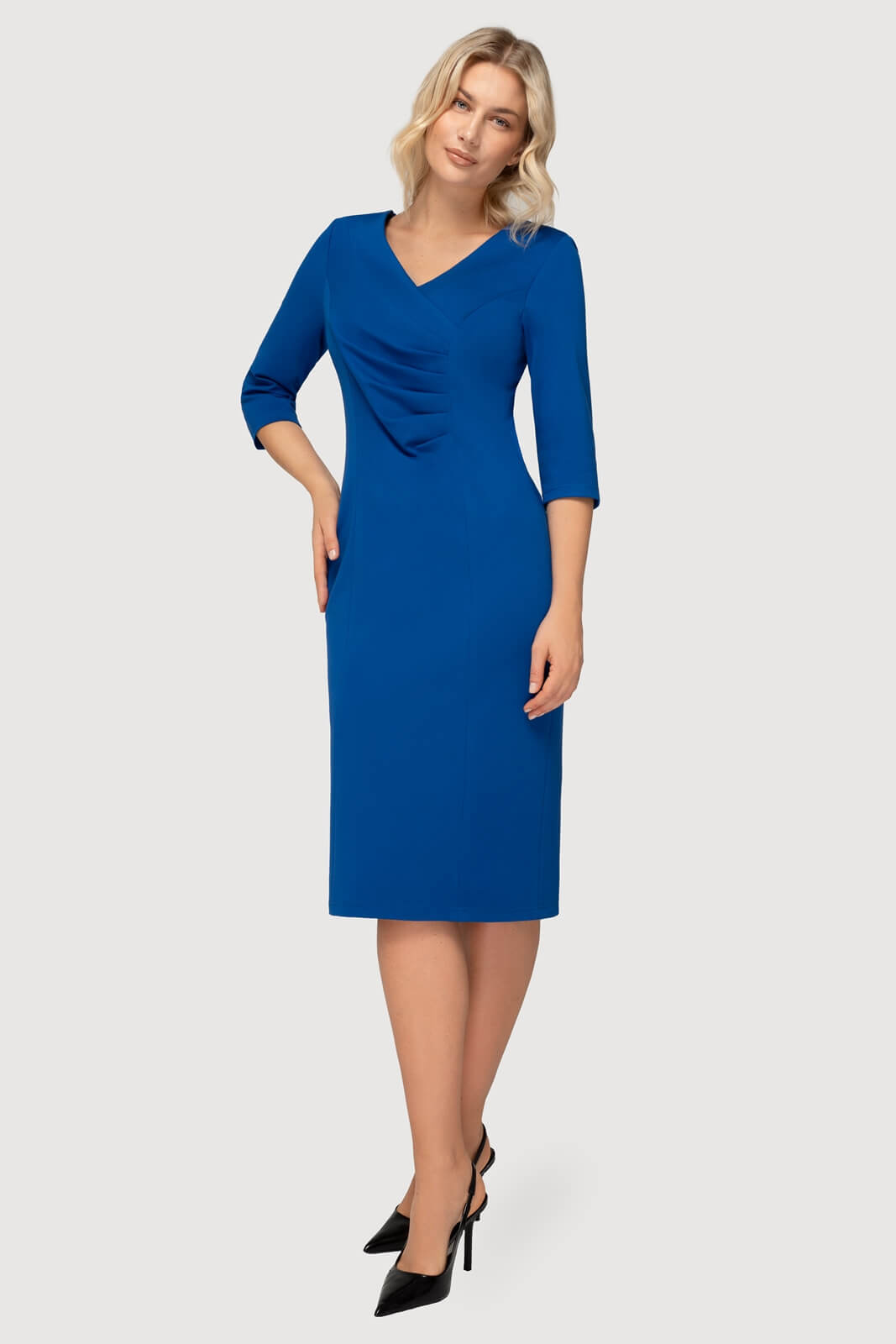 Sukienka Agnes w kolorze chabrowym to elegancka sukienka midi o dopasowanym kroju, która pięknie podkreśla sylwetkę i dodaje stylizacji wyrazistego charakteru. Kopertowy dekolt, drapowanie oraz klasyczna długość sprawiają, że model idealnie sprawdzi się na uroczystości, przyjęcia, wesela oraz eleganckie spotkania.